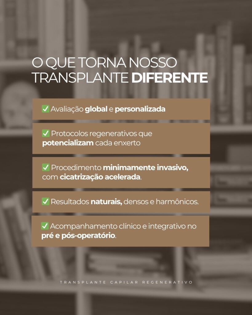 É um processo de reconstrução biológica e emocional, onde ciência e sensibilidade se unem para restaurar não apenas os fios — mas a identidade, a autoconfiança e o brilho vital de cada paciente.